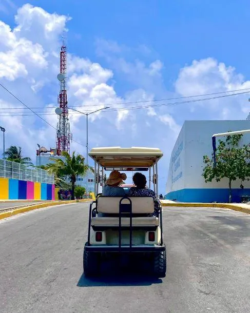 Guided tour around the island by car or golf cart .