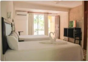 Lodging - 6 nights and 7 days double occupancy in a comfortable double room facing the pool and beach at Posada del Mar hotel, right on Playa Centro ·